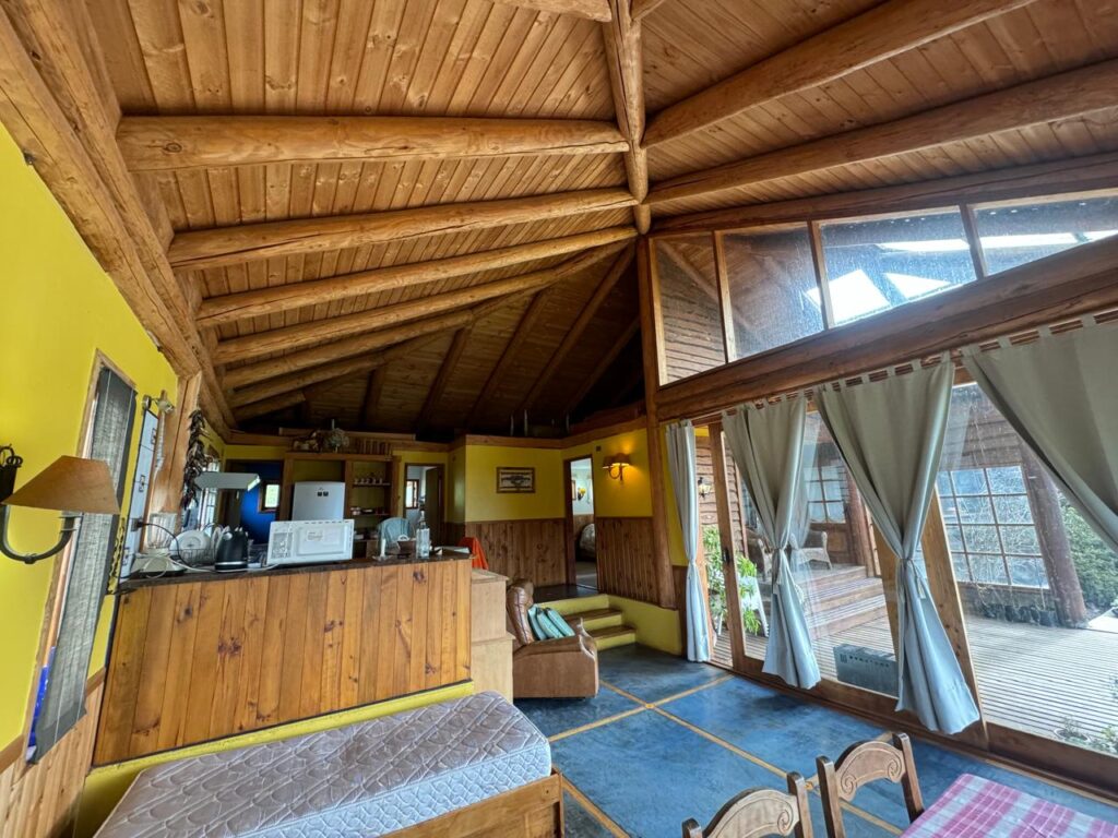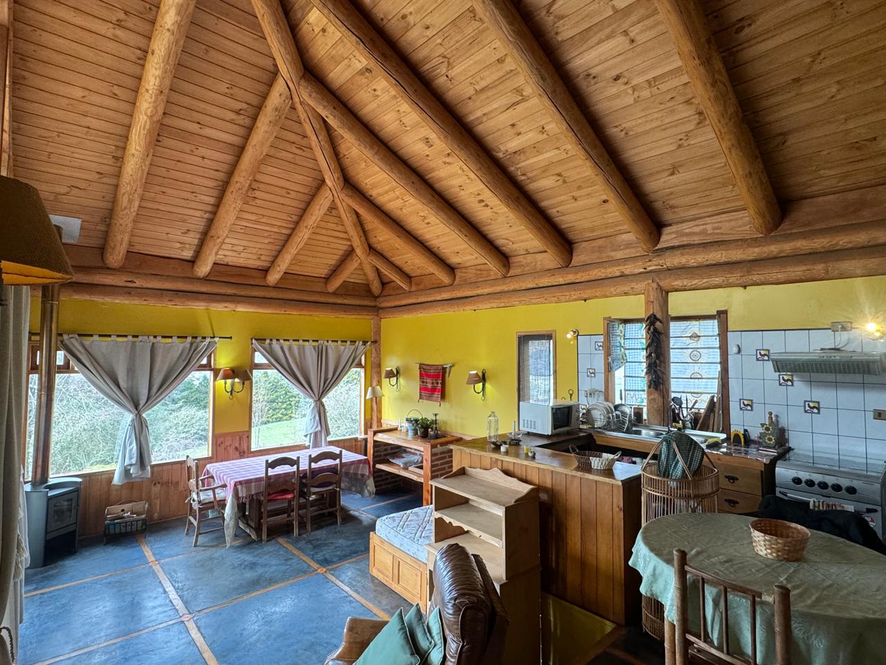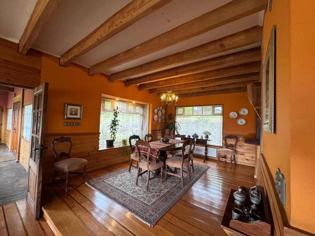 Piso del living comedor es de madera de coigüe y olivillo vitrificado.
