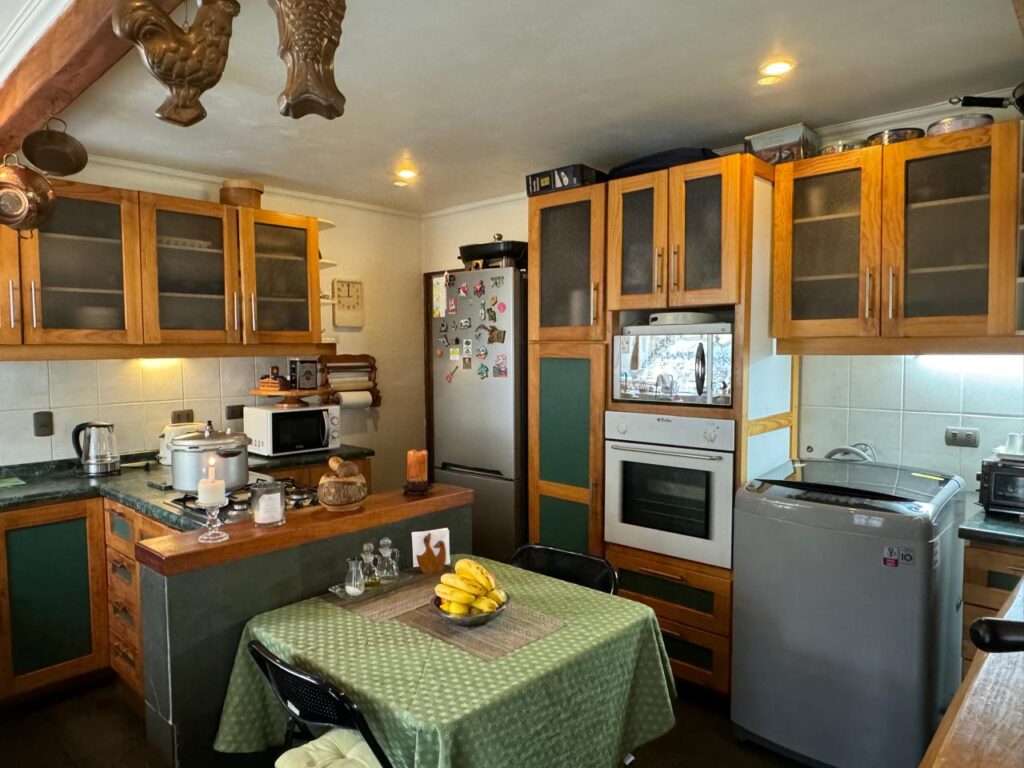 Una gran sala de estar con kitchenette que se utiliza para visitas o como quincho.